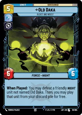 When Played: You may defeat a friendly Night unit not named Old Daka. Then, you may play that unit from your discard pile for free.