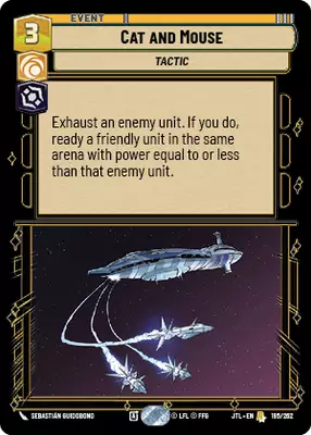 Exhaust an enemy unit. If you do, ready a friendly unit in the same arena with power equal to or less than that enemy unit.