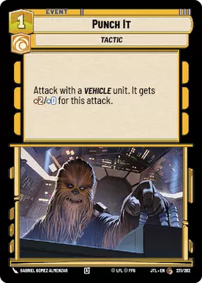 Attack with a Vehicle unit. For this attack, it gets +2/+0 and gains: “When this unit deals damage to a base: Draw a card.”