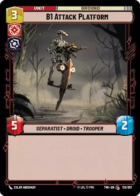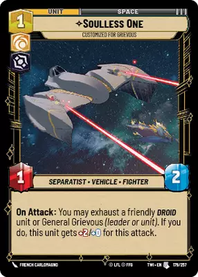 On Attack: You may exhaust a friendly Droid unit or General Grievous (leader or unit). If you do, this unit gets +2/+0 for this attack.