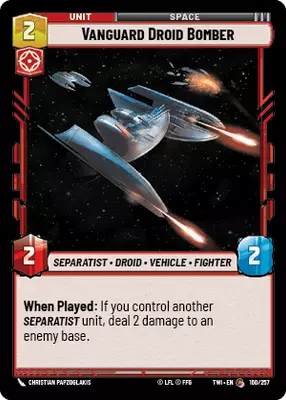 When Played: If you control another Separatist unit, deal 2 damage to an enemy base.