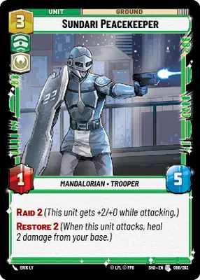 Restore 1 (When this unit attacks, heal 1 damage from your base.)