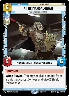 When Played: You may heal all damage from a unit that costs 2 or less and give 2 Shield tokens to it.